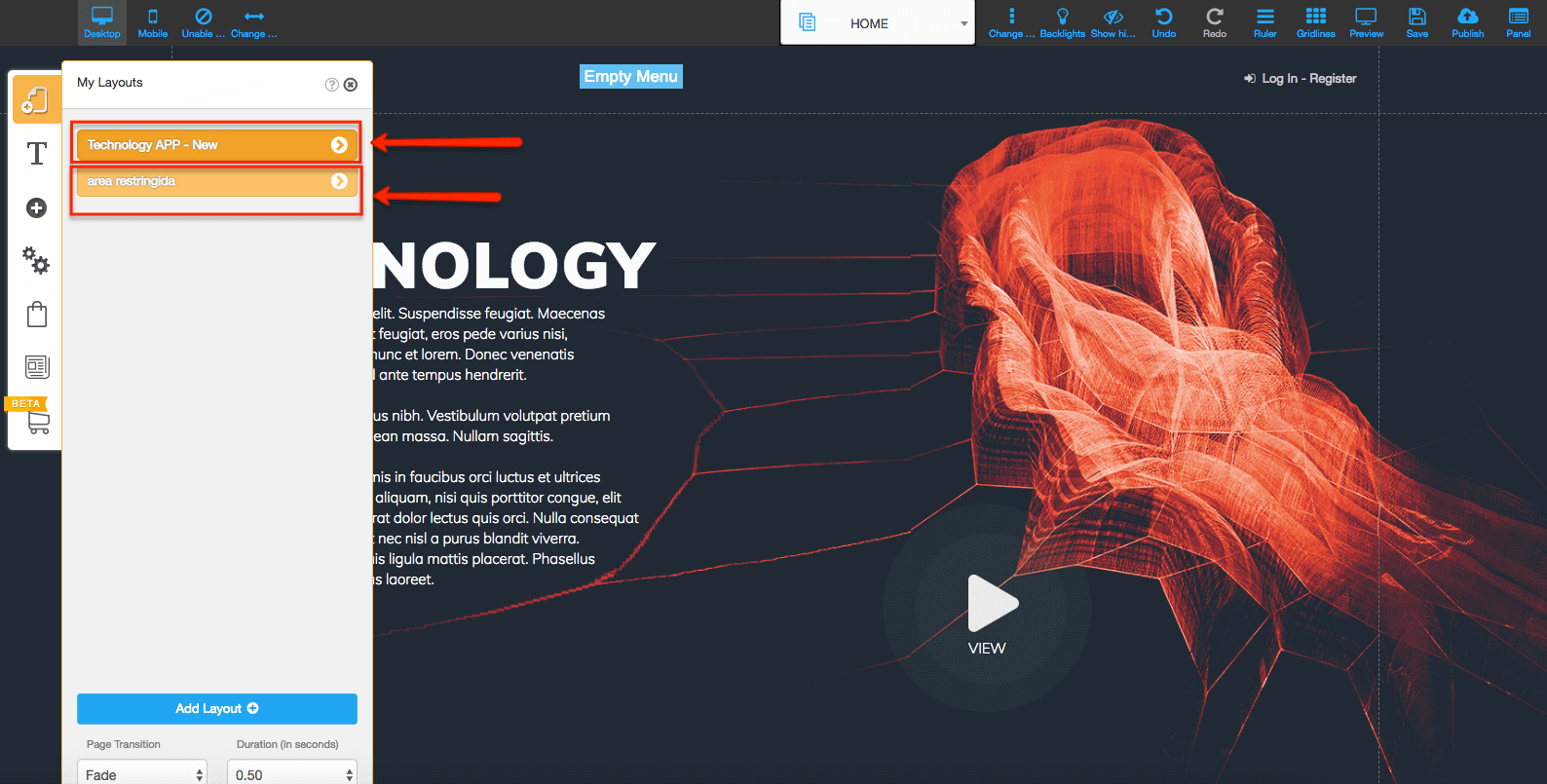 ​​​​​​​#1 Per poter disporre di un'area riservata, è necessario avere due layout: uno pubblico e uno etichettato come riservato (imparerai come fare qui sotto). In questo modo, i tuoi clienti potranno accedere alla vostra Home page senza essere bloccati perché non hanno accesso al layout riservato.